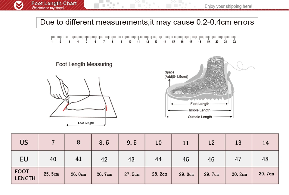 The size standards of different countries or different manufacturers are different,your foot length is the sole